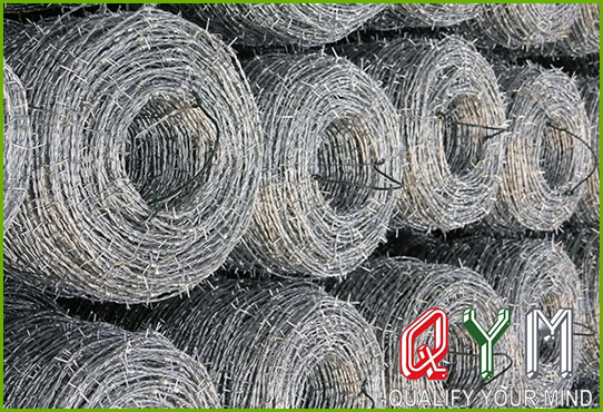 Barbed wire is a type of fencing material that is made up of twisted strands of wire with sharp barbs or spikes protruding at regular intervals.